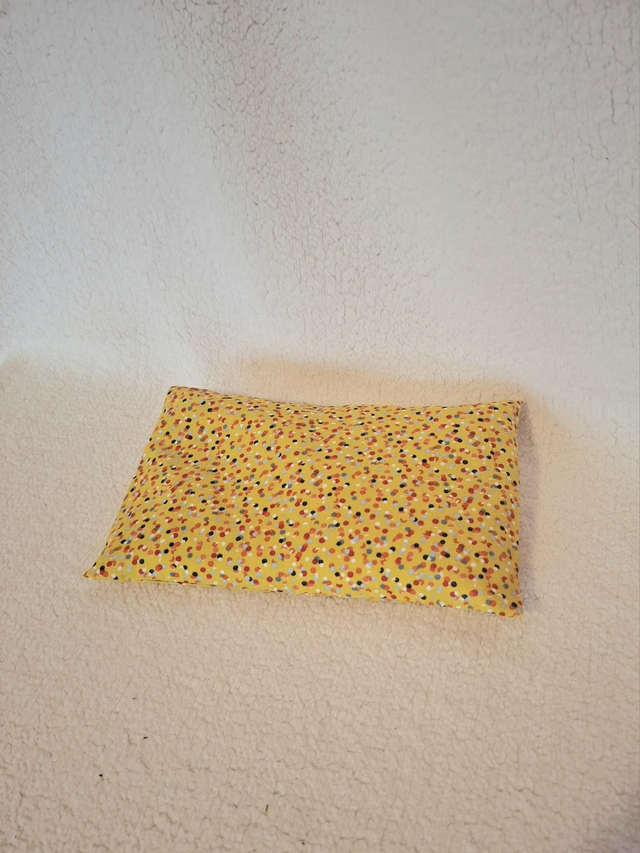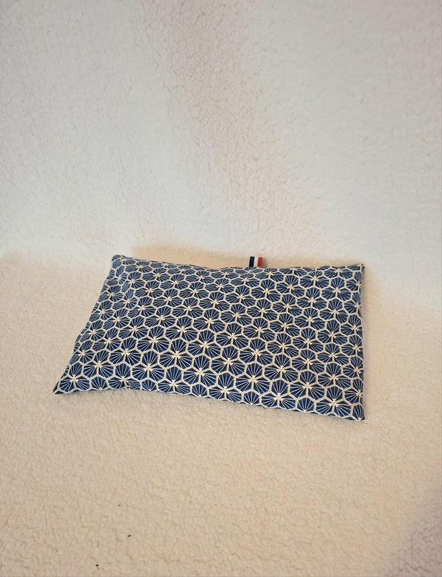 Vous cherchez un cadeau original,utile et agréable, n'hésitez plus Bouillotte sèche déhoussable garnie aux graines de seigle Connues depuis longtemps, les propriétés réfractaires de certaines céréales, sont précieuses comme apport de chaleur apaisante et réconfortante. Idéale après une journée de travail, de sports ou de ski. Décontraction et détente musculaire assurée. La chaleur accumulée se propage alors lentement et longtemps de façon ciblée sur les parties du corps qui en ont besoin Le seigle cultivé de façon raisonné et d'origine local Mettre la bouillotte au micro-ondes pendant environ 2 min maximum à 750 W, opération à surveiller ou au four 8 à 10 minutes à 100° dimension 24cm/14cm et 500g de seigle bouillotte réalisé en coton blanc housse coton imprimé housse lavable 30°
